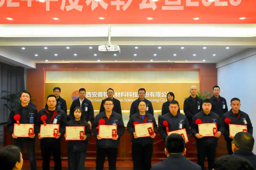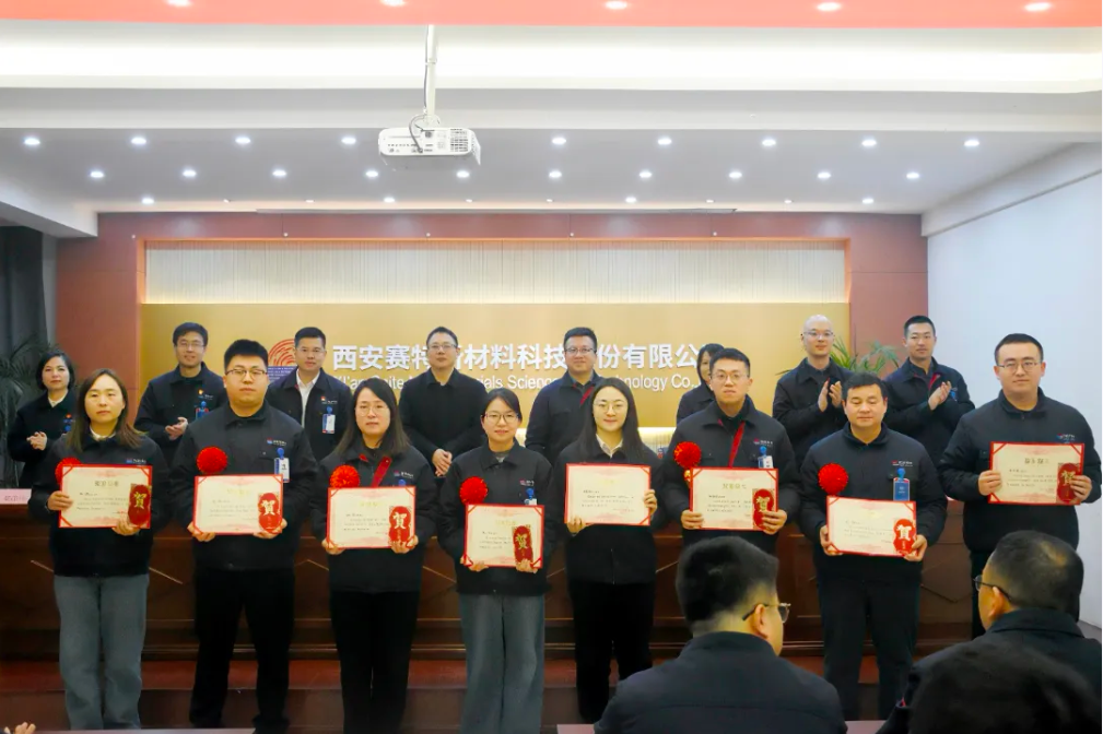 歲序更新,華章日新。1月23日,公司2024年度表彰大會暨迎新春年會在二樓報(bào)告廳隆重舉行。西北有色金屬研究院副院長張于勝,賽特公司經(jīng)營層,中層干部、職工代表及受表彰的集體和個(gè)人參加了會議。會議由楊曉康董事長主持。